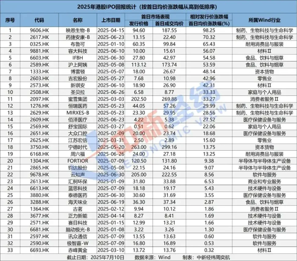 「港股打新的赚钱效应也是在 2024 年下半年就有所体现了,比如毛戈平上市首日上涨 70%,开启了打新小阳春行情,而在今年更是一轮大行情,」
